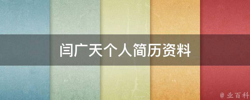 最佳答案闫广天,男,中共党员。曾任中铁十八局集团四公司执行董事、总经理,中铁十八局集团副总经理(主持经理层工作),中铁十八局集团有限公司党委副书记、总经理。现任中铁十八局集团有限公司党委书记、董事长、总经理。