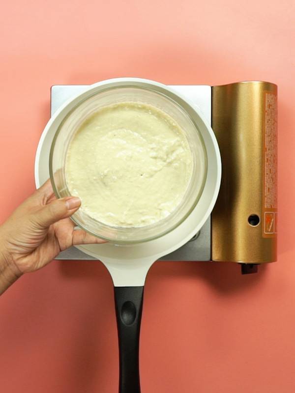 6、锅中倒入食用油,适量刷匀,放入面糊,小火煎至两面金黄即可。