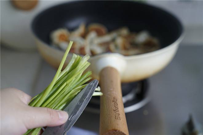 7、最后加入小葱,小火煎至葱花出味即可。