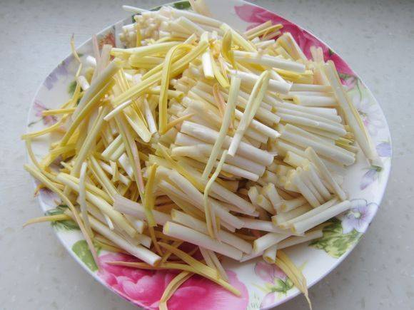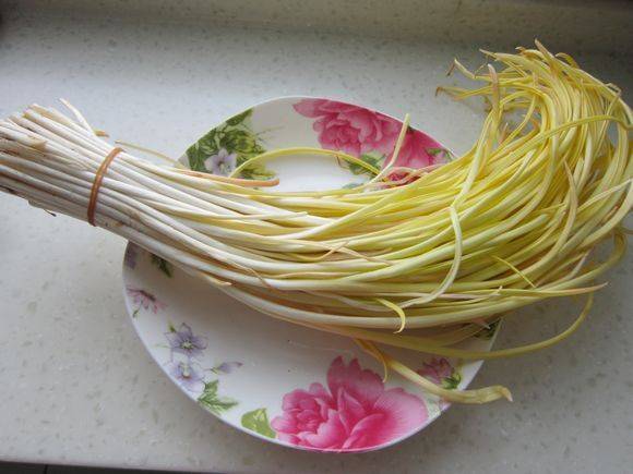 1、准备材料:韭黄200克、猪肉200克、植物油适量、盐适量、生抽5克、蚝油5克。