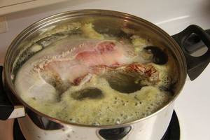 3、将牛舌捞出,过凉水,扒掉白色的皮。