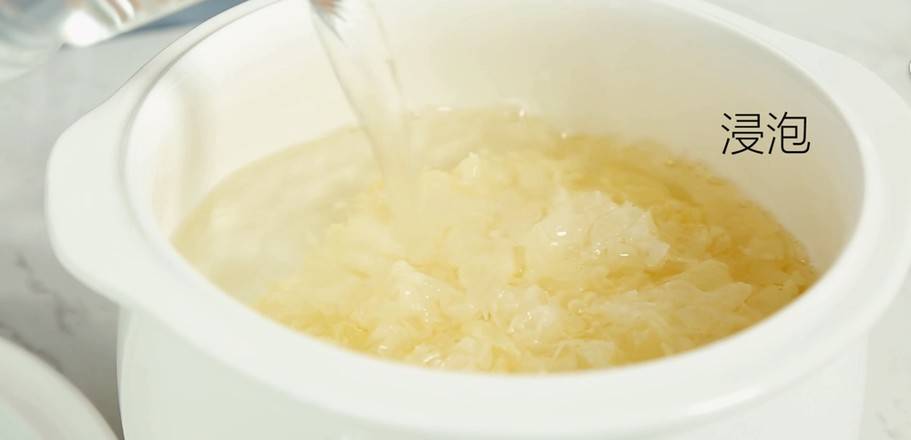 2、将银耳泡软。