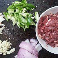 1、准备材料:牛肉300克、鱿鱼适量、青椒适量、姜适量、蒜适量、料酒适量、蚝油适量、油适量、盐适量、生粉适量、酱油适量、洋葱半个。