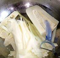 3、腌软的木瓜用温水冼去盐份沥干。
