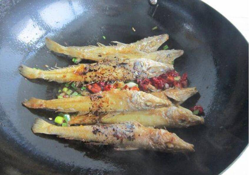 4、煎至两面变硬金黄色,把鱼放在一边。