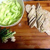 2、黄瓜去籽后和鱼卷一起切片备用。