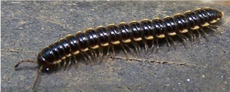 2、马陆:多足亚门倍足纲节肢动物。其体节两两愈合,除头节无足,头节后的3个体节每节有足一对外;其他体节每节有足2对,每对双体节含2对内部器官;头节含触角、单眼及大、小腭各一对,体节数各异;倍足纲,暗褐色,背面两侧和步肢赤黄色。