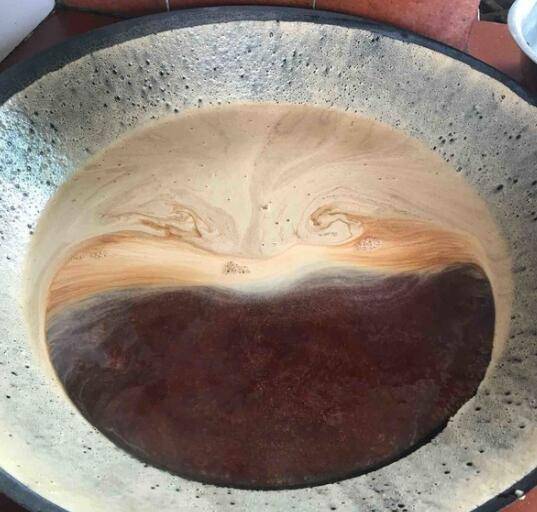 把去核的枇杷清洗三四遍,洗干净的枇杷放锅里煮,差不多两三小时熬至枇杷出水。