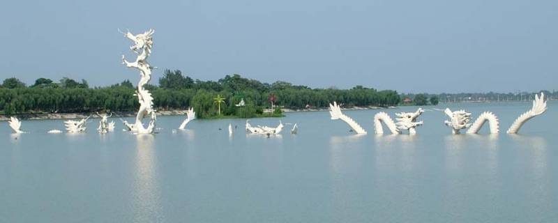 龙湖,俗称城湖,因中华人祖太昊伏羲氏定都宛丘,以龙纪官,号曰龙师而得名。1996年柳湖清淤后,因淮阳被称为龙都而定名。 龙湖东西阔4.4公里,南北长2.5公里,围堤14公里,由东湖、柳湖、南坛湖、弦歌湖四部分组成,11平方公里,俗称万亩龙湖,是中国内陆最大的环城湖。 2009年12月23日经国家林业局批准,晋升为国家湿地公园。