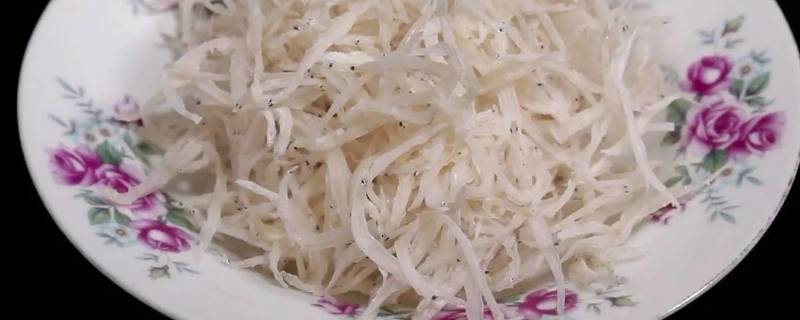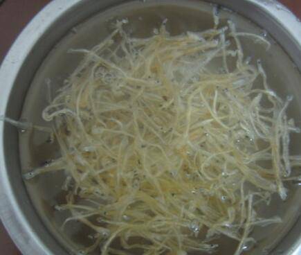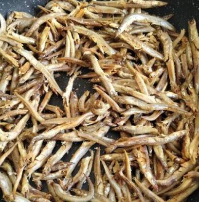 2、将小银鱼洗净沥水,用锅把鱼干烘干。