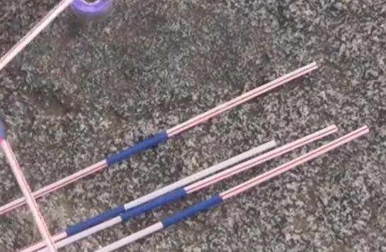 2、把吸管剪成小段,然后粘成一个三角形支架。