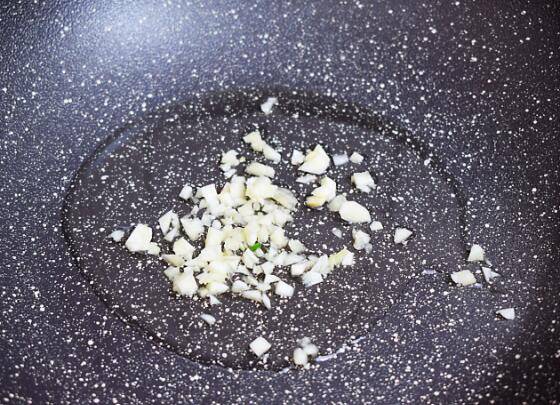 2、锅中倒入适量的食用油烧热,放入蒜末爆香。