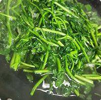 3、豆瓣菜下锅。水一开,豆瓣菜就熟了。