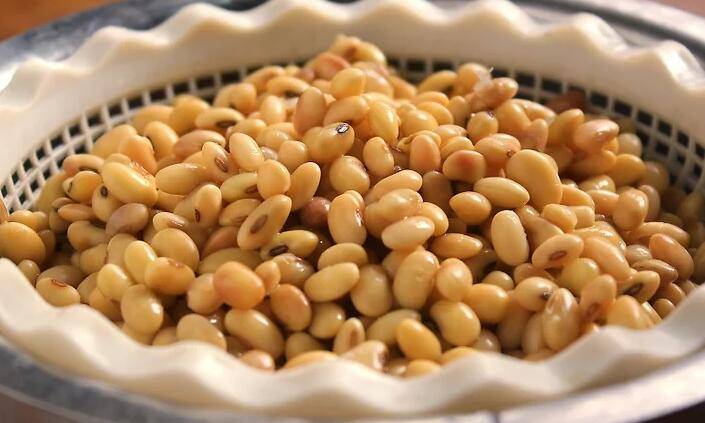 3、滤出黄豆。