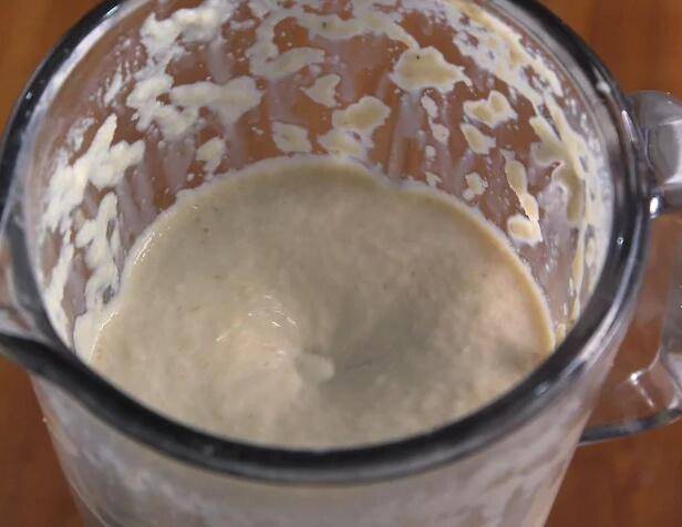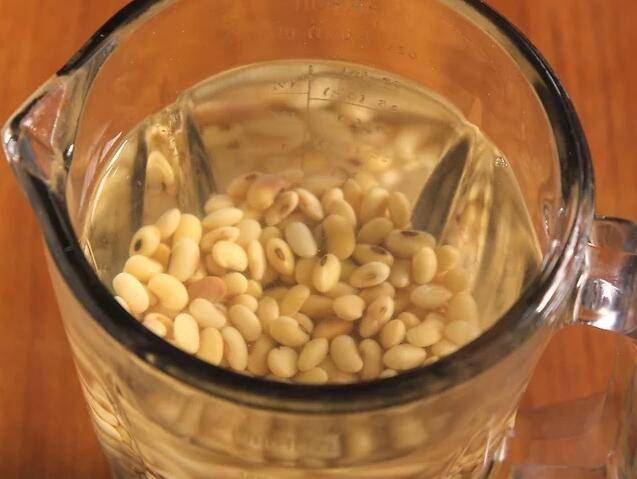 5、滤干黄豆,加1升冷水,在搅拌器中搅拌3分钟。