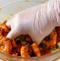 8、最后戴上手套,抓拌均匀即可。