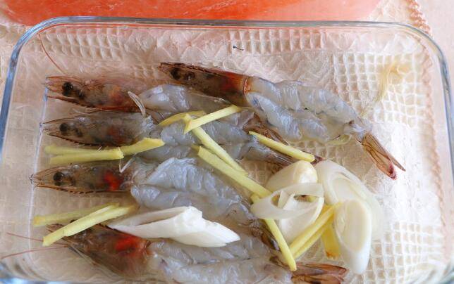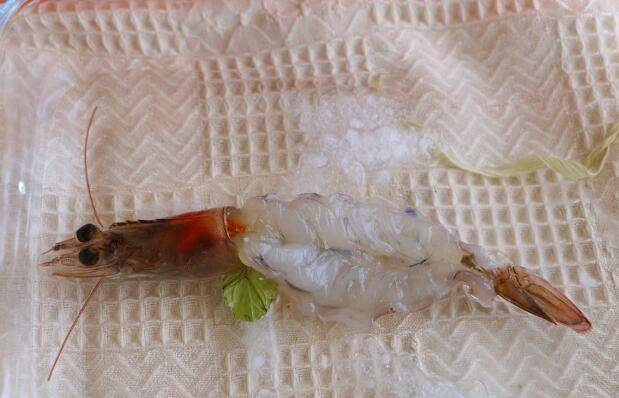2、将活虾去外壳、虾线肠泥。