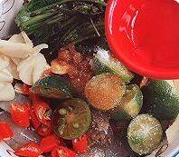 2、放入配料,倒入盐,糖,生抽,醋。
