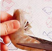 3、沿背部轻轻划开,不要划透,留头部和尾巴。
