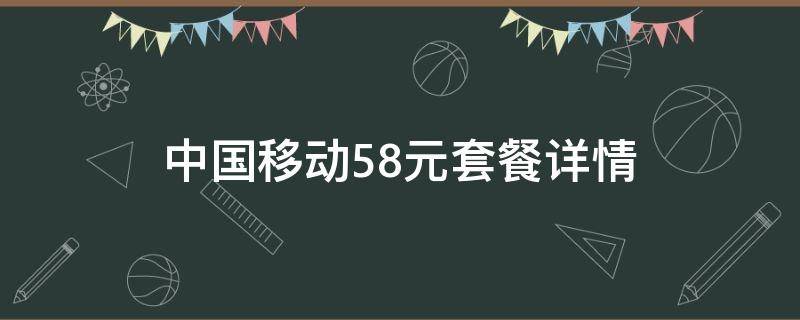 中国移动58元套餐(月费58元,一次性收取,含来电显示、20GB国内流量、100分钟国内拨打国内电话时长、100M宽带业务;国内接听0元。超出套餐后,国内流量3元/GB,国内拨打国内电话0.15元/分钟。总流量达到200GB后关闭上网功能,次月恢复。国内业务不含港澳台业务)。