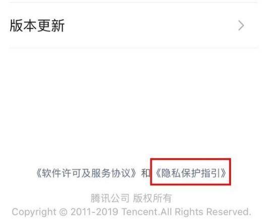 1、首先在微信的设置界面找到微信的版本信息点击进去,然后找到最下方的“隐私保护指引”点击。