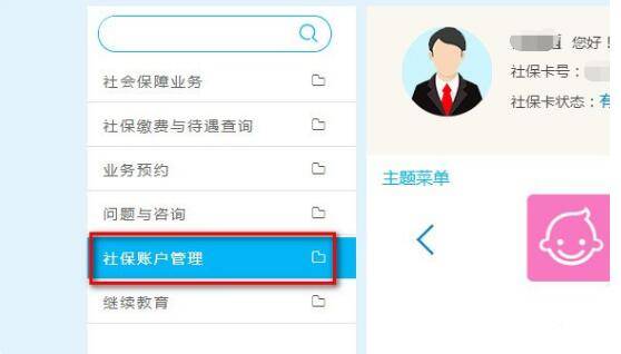 2、打开个人网厅页面,点击社保账户管理。