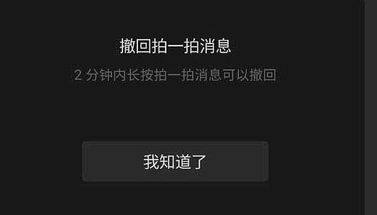 2、两分钟内,长按拍一拍消息,会提示撤回拍一拍。