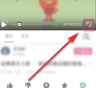 以华为P40,Android 11,bilibili6.10.13版本为例:搜索并且点击播放视频,进入到视频以后会看到有个视频画面放大按钮,点击一下。