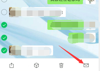 2、在聊天记录界面中点击左边的小圆圈“勾选”所需要导出的的聊天记录,点击下方的“邮件”。