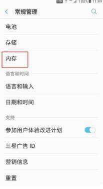 4、进入常规管理页面之后,点击“内存”选项,如下图所示。