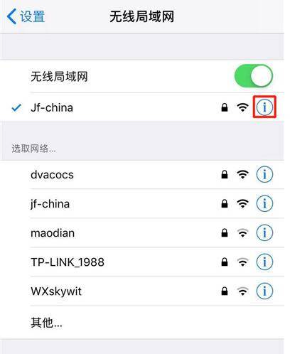 2、点击网络名称右边的“i”。