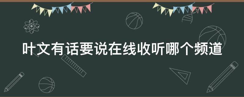 叶文有话要说是黑龙江都市女性广播FM102.1。《叶文有话要说》(原名《有话好好说》)是一档全国联播的情感类广播节目,创办于2005年1月1日,节目以关注女性情感、婚姻生活为宗旨,集新闻性、思辨性、参与性于一体。主持人叶文睿智辛辣,快言快语,无情的批判那些在婚姻和爱情中出现的不道德的人与事。