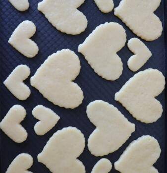 6、压好的饼干转移到烤盘上。