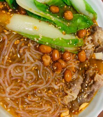 倒入开水或高汤,撒上几粒花生米即可食用。