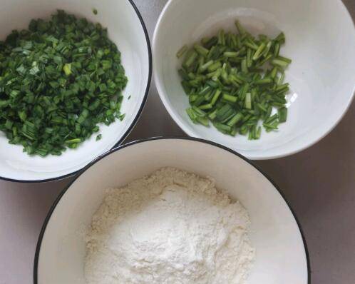 韭菜清洗干净后根部切段,叶子切碎备用。