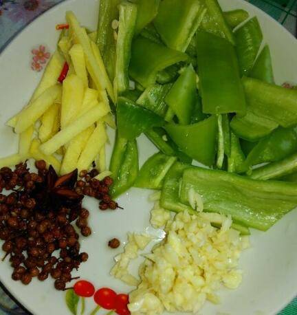 准备材料,姜丝,蒜泥,辣椒,花椒。