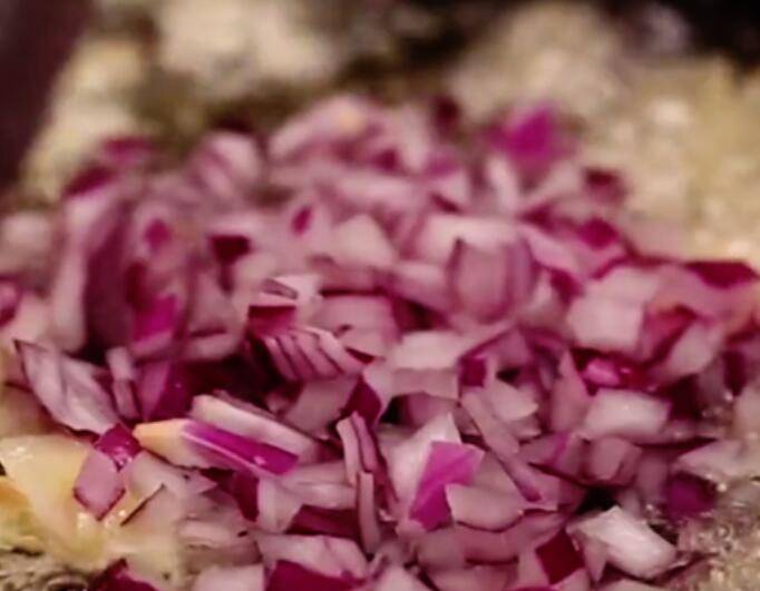 1、锅中油热后,放入花椒,姜,蒜,洋葱炒香。