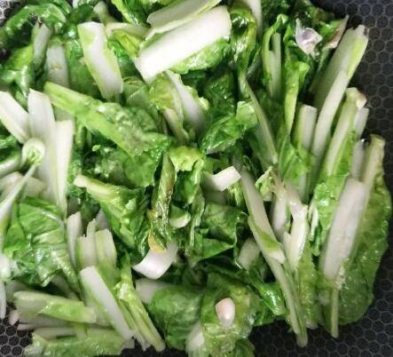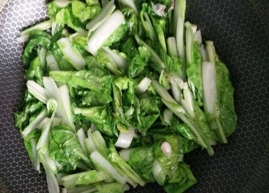 3、放入白菜,翻炒变色变软。