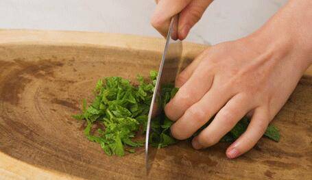 2、取三分一的薄荷,摘下中间的嫩叶,切丝备用。