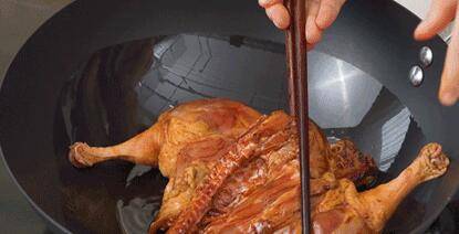 8、然后开盖加入剩余未切丝的薄荷叶,继续焖煮10-20分钟 · 煮至鸭腿可用筷子轻松插入,且没有血水流出,便表示熟透,可以出锅斩件。