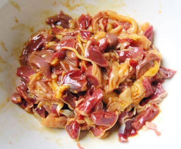 技巧二:加调料。要先将已切片的鸡胗用料酒、干淀粉和少许姜丝上浆腌制一下,如此不仅可以去腥,还能保持鸡胗滑嫩。