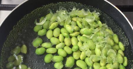 毛豆洗干净把皮剥好,锅内放水烧开放少许盐和油、放入剥好的毛豆焯1分钟,捞出来过一下凉水。