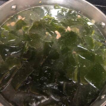 5、加入开水,没过裙带菜即可。