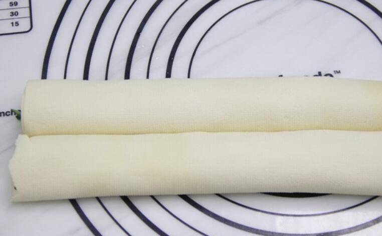 8.再卷起来,需要卷得紧一些,然后斜着切成小段摆盘。