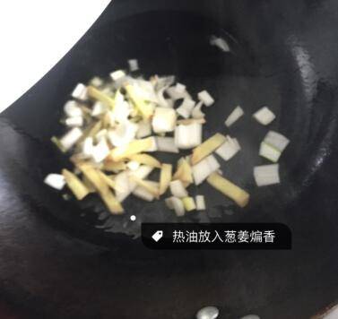 2、油热倒入葱姜炒香。
