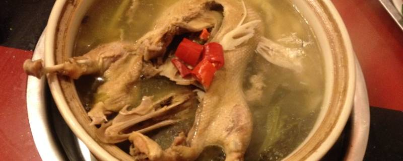可以加泡白萝卜、泡椒等泡菜类食材。泡菜均选择四川泡菜,数量视鸭子大小而定,注意不要放得太多,以免失去鸭肉的鲜味,影响鸭子口感。酸汤鸭酸鲜可口、滋阴开胃、味美汤鲜。鸭肉为补益佳品,味甘性凉。