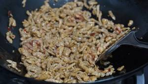 4、不停翻炒肉丝,炒至肉丝全部变色以后,放入嫩姜继续翻炒几下。
