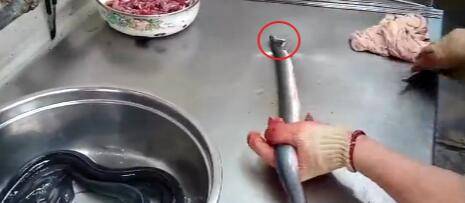 1、将鳗鱼的头固定在桌子上。