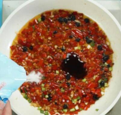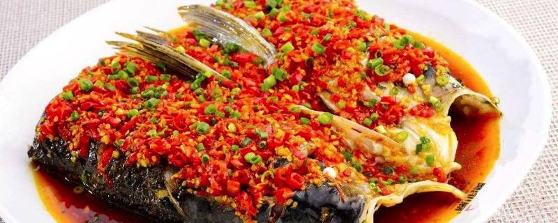 4、将剁椒酱铺在鱼头上,大火蒸15分钟即可。