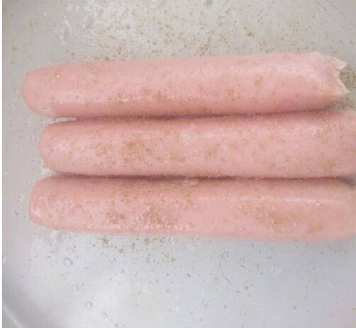 2、准备香肠3根,刷一层食用油。